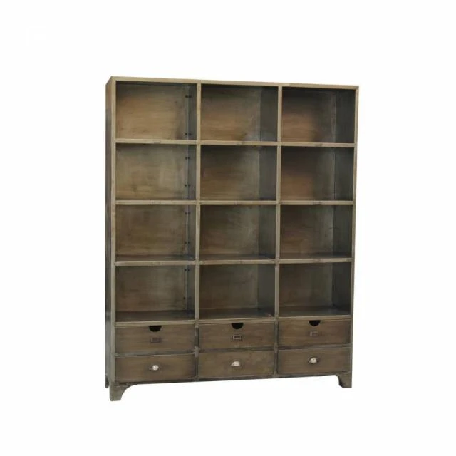 Bibliothèque industrielle 6 tiroirs 12 niches fer antique L160 X P40 X H199