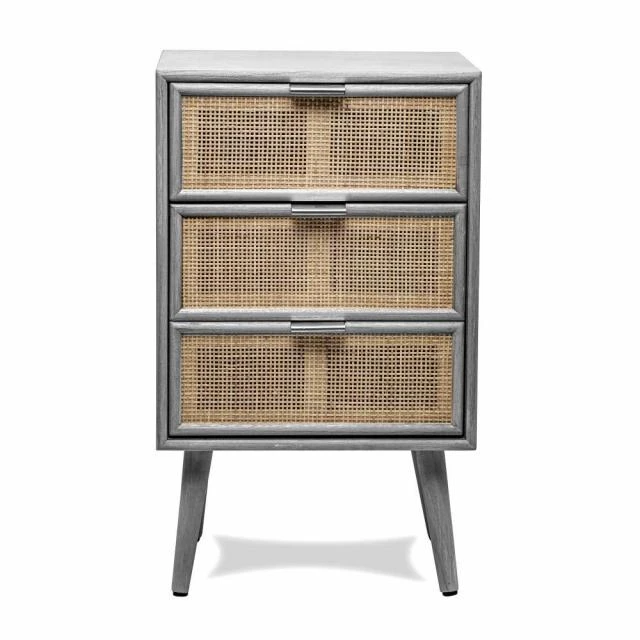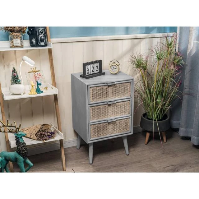 Fonction: Ses 3 tiroirs en rotin/cannage offrent avec style des possibilites de rangements pratiques. Les poignees sont en metal finition chromee. Polyvalente, elle peut servir de commode, chevet, table d’appoint ou encore de bout de canape.
