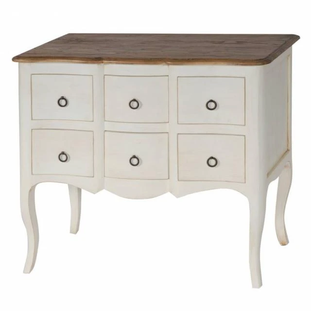 Commode Ile de France blanc patiné plateau ciré L80 x H85 x P55 6 tiroirs