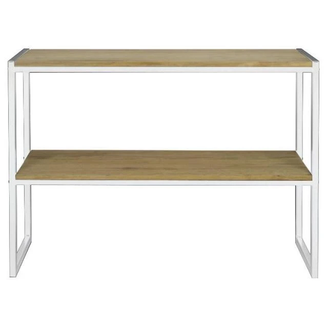 Console Icub double plateau. Bois vieillie style industriel. Profondeur 32cm x Longueur 140cm x hauteur 75cm. Couleur blanc. Conçue et fabriqué en Espagne . Une pièce robuste qui apportera la chaleur du bois naturel à n’importe quel ambiance.
