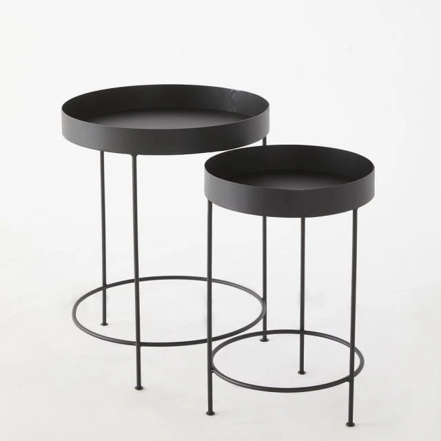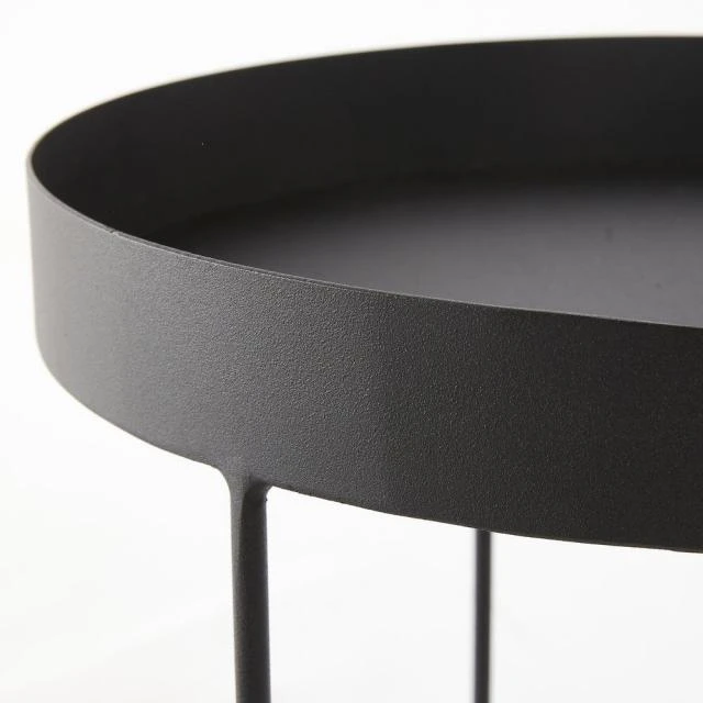 Table d’exposition pour vos produits, table de travail, console de présentation, leur modularité est idéalement étudiée pour aménager votre espace au gré de vos besoins. Montées chacune sur trois pieds solidement soudés à leur base par un cerclage de renfort, elles offrent une excellente stabilité au sol : pas de danger qu’elles deviennent bancales et vacillent sur leurs bases. En plus, ces tables s’empilent pour un gain d’espace et un rangement instantané dès lors qu’elles ne servent pas. Consoles rondes finition métal noir mat. Diam. 30 x H. 45 cm ; Diam 40 x H. 50 cm.
