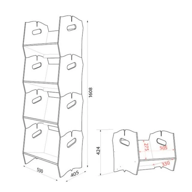 Chaque élément peut supporter un contenu de 60 kg, soit 240 kg par colonne de 4 modules.