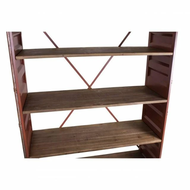 Etagère container rouge Tole + bois ciré L107 x P38 x H175.5