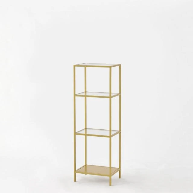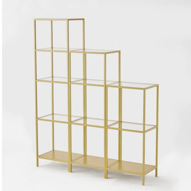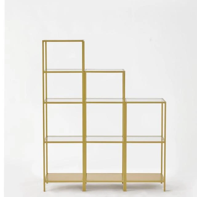 D’une belle finition coloris or, cette étagère en métal est vraiment très bien pensée. Elle constitue un excellent choix de mobilier périphérique, quel que soit votre type de commerce. En effet, vous apprécierez (et votre clientèle aussi !) son style contemporain, épuré, aéré, à la fois élégant et hyperfonctionnel : ses montants, discret et ses tablettes en verre trempé laissent vraiment la vedette aux produits exposés. En plus, elle est disponible en 3 modèles de hauteur différente : elles sont vendues séparément mais elles peuvent aussi s’assembler. À tout moment, vous pourrez les organiser en fonction de la configuration de votre espace de vente : individuellement, en escalier ou en alignement asymétrique. Ces étagères font partie de notre gamme “CREMAGOLD”, un système d’agencement entièrement modulable et configurable. C’est vraiment une solution qui vous donne l’assurance de pouvoir faire évoluer vos agencements en fonction de vos besoins. Très simple à mettre en œuvre, cette gamme a été spécialement conçue par RETIF pour convenir à l’aménagement de boutiques de prêt à porter, mode, pâtisserie, beauté, maroquinerie… Elle vous permet de réaliser un agencement étudié avant tout pour valoriser les produits et renforcer votre efficacité merchandising. Tous les éléments de la gamme «CREMAGOLD» font l’objet d’une finition parfaite, à la fois sobre, lumineuse et très «classe». Ce modèle d’étagère existe aussi en 2 autres hauteurs. Etagère «CREMAGOLD». L. 40 x P. 30 x H. 120 cm.