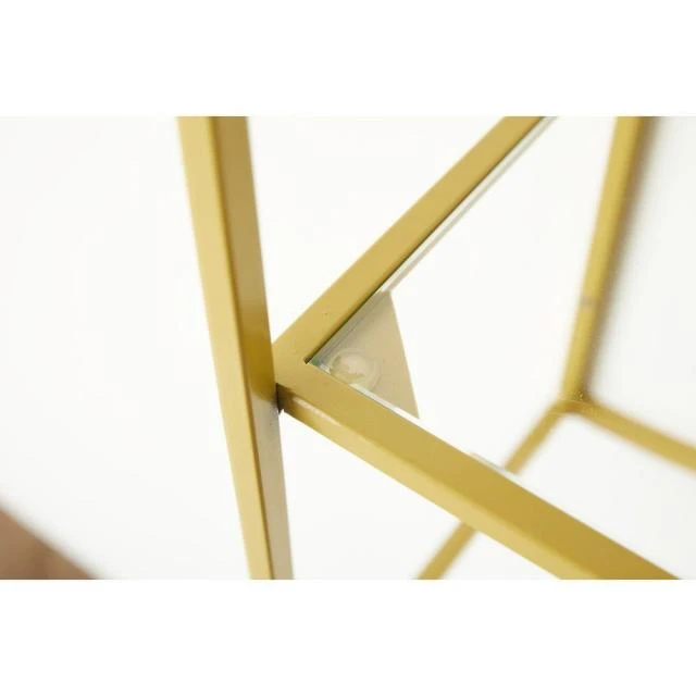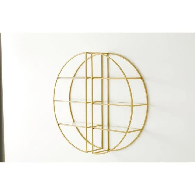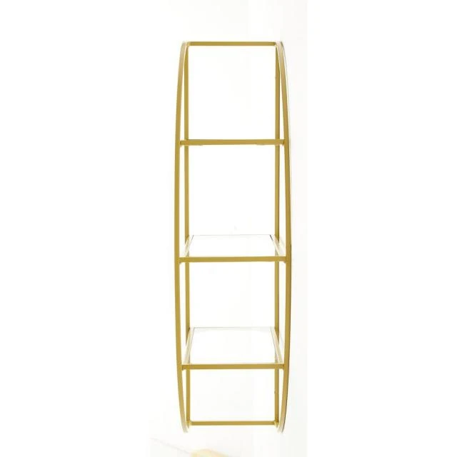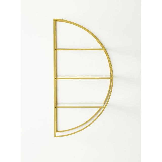 Élégante et originale, cette étagère en métal doré a une forme “demi-lune” qui sait se faire remarquer aux regards des clients. Sa structure aérée et discrète et ses tablettes en verre trempé sont parfaites pour laisser la vedette à vos produits exposés. De belle dimension, elle est aussi adaptée à un salon de coiffure qu’à un restaurant, une boutique ou tout autre commerce où le raffinement est de mise. Elle peut se poser dans les deux sens : soit la courbe à gauche soit la courbe à droite. Et, le mieux c’est d’en commander deux, ainsi vous pourrez les placer côte à côte pour obtenir un cercle parfait !