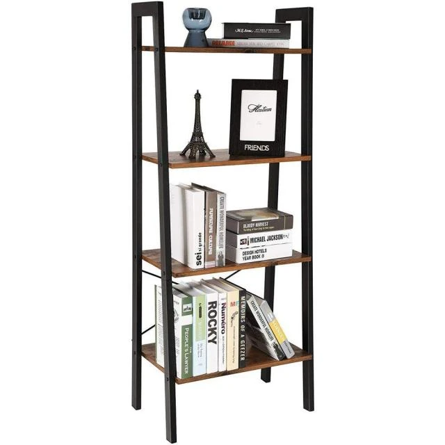 Composée dun cadre métallique stable soutenu par 2 barres transversales, de 4 étagères en panneaux de particules durables et un placage rustique résistant à l’usure.