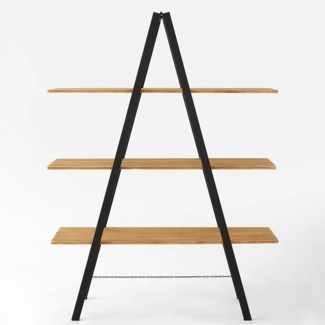 Très bien pensée, cette étagère en forme d’échelle est livrée avec un jeu de 3 tablettes amovibles, que vous fixerez à la hauteur qui vous convient : en effet, chaque barreau de l’échelle est doté d’un cran qui assure le maintien des tablettes. Et une fois posées, vous pourrez toujours enlever ces tablettes et les déplacer, selon vos besoins : elles peuvent être alignées, en escalier, en asymétrie, vous avez toute liberté pour organiser vos présentations de produits. Et comme la structure échelle peut se replier, c’est vraiment un mobilier bien conçu pour faciliter son rangement et ses déplacements dans votre espace de vente.