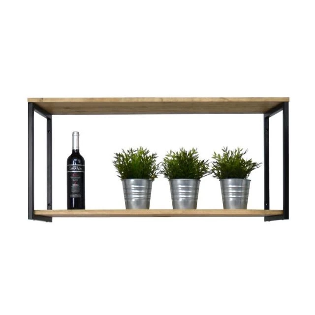 Étagère murale double modèle Icub –style Industriel Vintage 30X100x48h.cm. Longueur 100cm x Profondeur 30cm x hauteur de 48cm. Plateau bois en 30mm. Finition effect vintage. Estructure métalique en noir. Solidité grâce a l’estructure en tube d’acier coupé à laser, et fini avec peinture en poudre sechée au four ‘a l’haute temperature. Plateau en bois de pin massif, fini avec des huiles naturels, avec haute résistance à l’usage et certification écologique. Touchée très agréable à bois naturel.