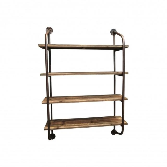 Etagère murale industrielle 4 plateaux bois ciré L80 X P23.5 X H120