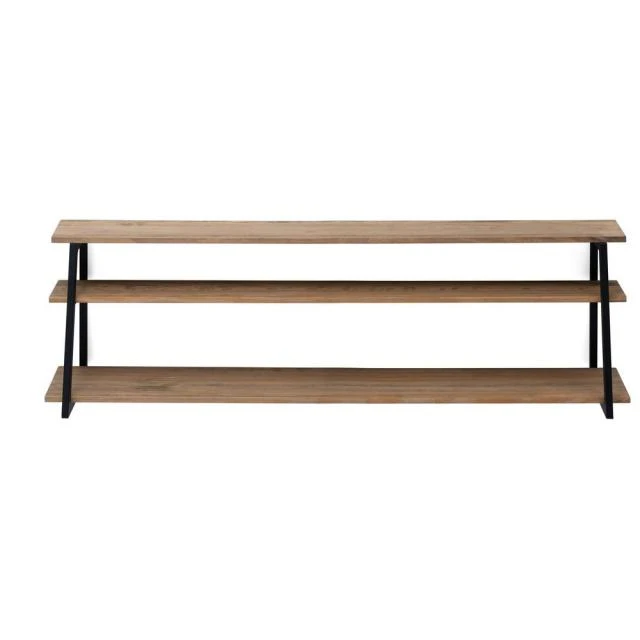 Étagère polygonal ascendant. Style industriel vintage. Longueur 140cm x Profondeur 35cm x hauteur de 47cm. Métal noir, bois effect vintage – vieilli. Conçue et fabriqué en Espagne par BOX FURNITURE.