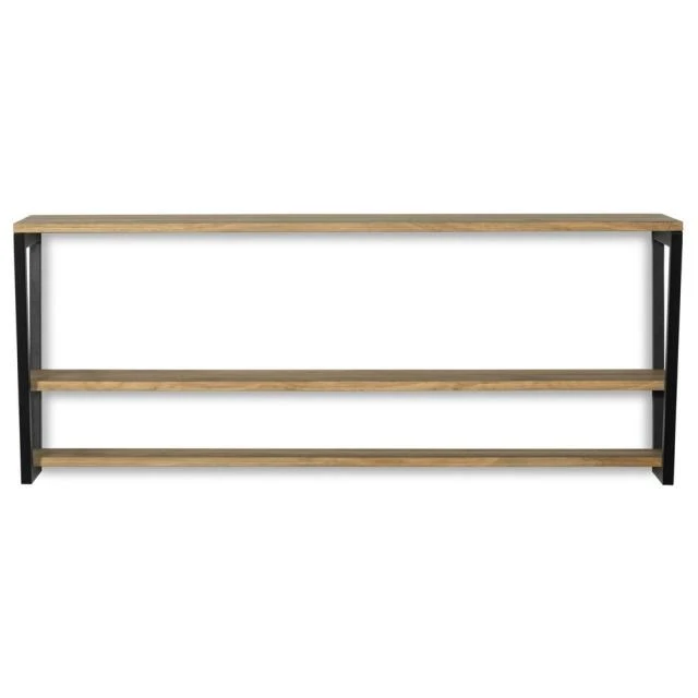 Étagère polygonal descendant. Style industriel vintage. Longueur 140cm x Profondeur 35cm x hauteur de 47cm. Métal noir, bois effect vintage – vieilli. Conçue et fabriqué en Espagne par BOX FURNITURE.