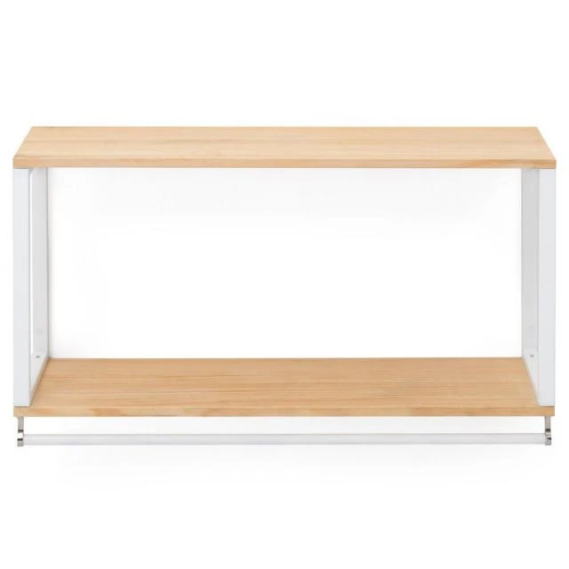Étagère murale double – Portemanteau modèle Icub. Bois Naturel style scandinave. Longueur 100cm x Profondeur 30cm x hauteur 55cm. Couleur blanc.