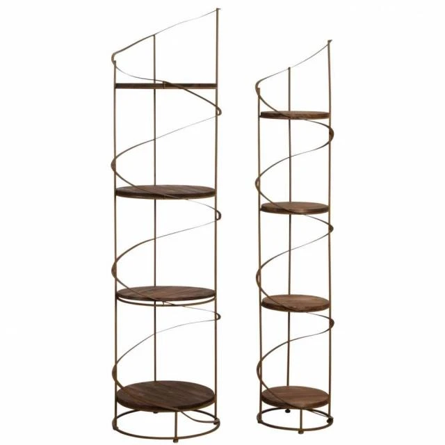 Etagères rondes en métal avec 4 plateaux en bois.