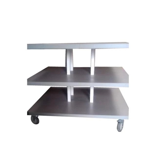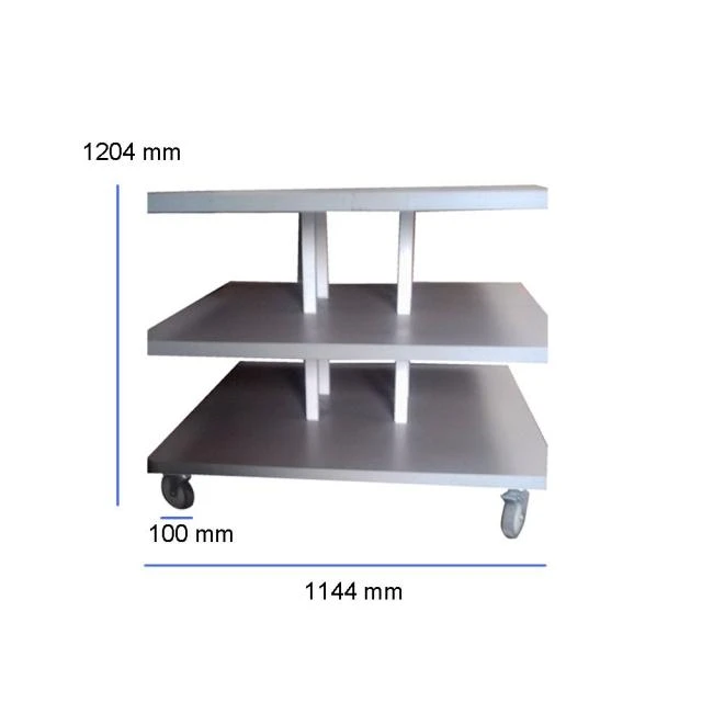 Présentoir idéal pour mettre en valeur vos collections en magasin et grande surface. Cet îlot central offre un plan de travail supplémentaire et s’intègre dans une multitude d’endroits. Conçu sur 3 étages et avec roulettes, il reste très pratique à déplacer et à nettoyer.