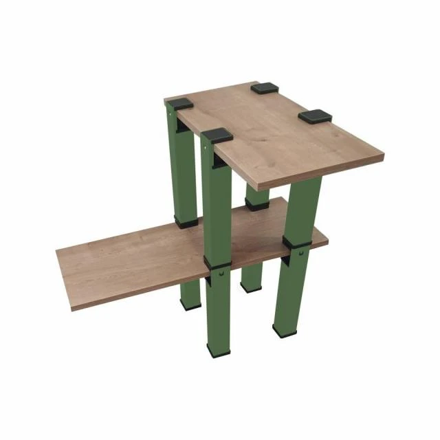 Kit de 8 pieds modulables de 37,5 cm de hauteur, 1 plateau de 60x30x1.9cm, 1 plateau de 80x30x1.9cm.