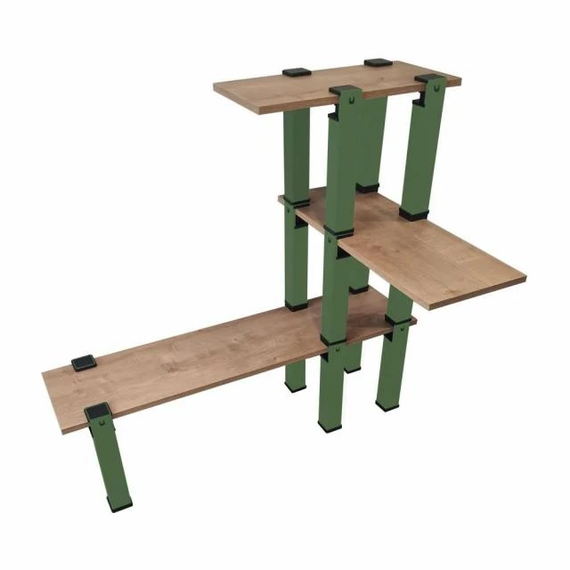 Kit de 14 pieds modulables de 37,5 cm de hauteur, 1 plateau de 60x30x1.9cm, 1 plateau de 80x30x1.9cm, 1 plateau de 120x30x1.9cm