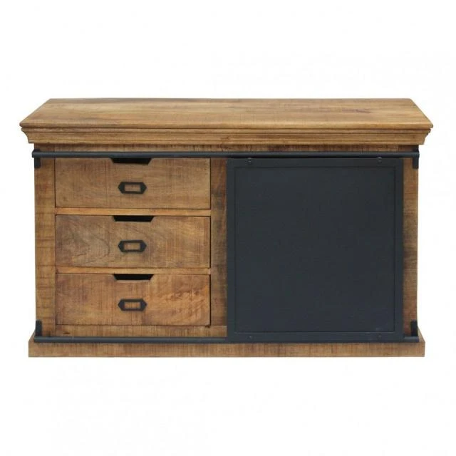 Meuble 3 tiroirs ciré avec porte coulissante L120 X P45 X H75