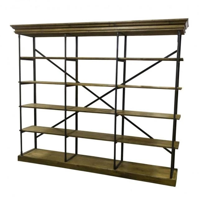 Meuble étagère en fer et bois ciré L270 XP 46 X H223