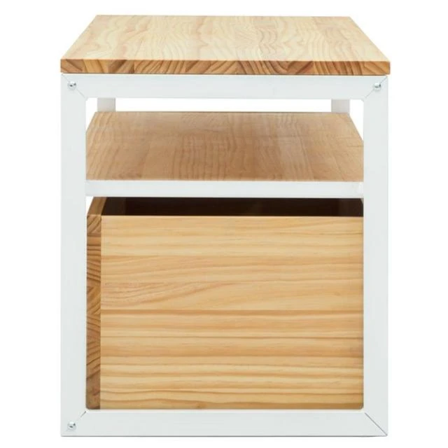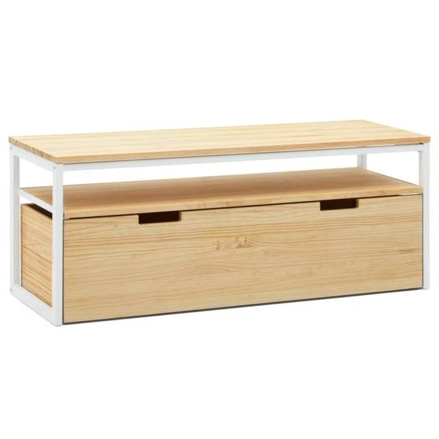 Meuble TV Icub3 avec étagère et conteneur en style Scandinave. Pieds couleur Blanc. Longueur 120cm x Profondeur 40cm x hauteur 45 cm. Conçue et fabriqué en Espagne par BOX FURNITURE. Parfaite pour créer une ambiance nordique.Plateau en bois massif de pin de 18mm fini aux des huiles naturels, avec haute résistance à l’usage et certification écologique. Finition naturel. Touchée très agréable à bois naturel.Pieds en tube d’acier. Finition de peinture en poudre séchée au four à l’haute temperature. Haute résistance.Chaque pièce est unique et legères variations de tonalité peuvent apparaître par rapport à la photo. Meuble recommandé pour intérieur. Envoyé démonté. Livré avec notice de montage, vis et tous les éléments pour l’assemblage. Vis autoperceuses pour une plus facile montage. Conseillé d’utiliser un tournevis éléctrique.