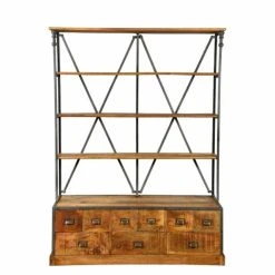Meilleure affaire ???? Mercerie Bois Ciré 9 Tiroirs Indus + 4 étagères L142 X P46 X H188 ????