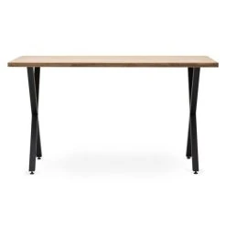 Sortie ???? Table Salle à Manger Lunds 80x160x75cm Métal Noir-plateau Bois Finition Naturel ????