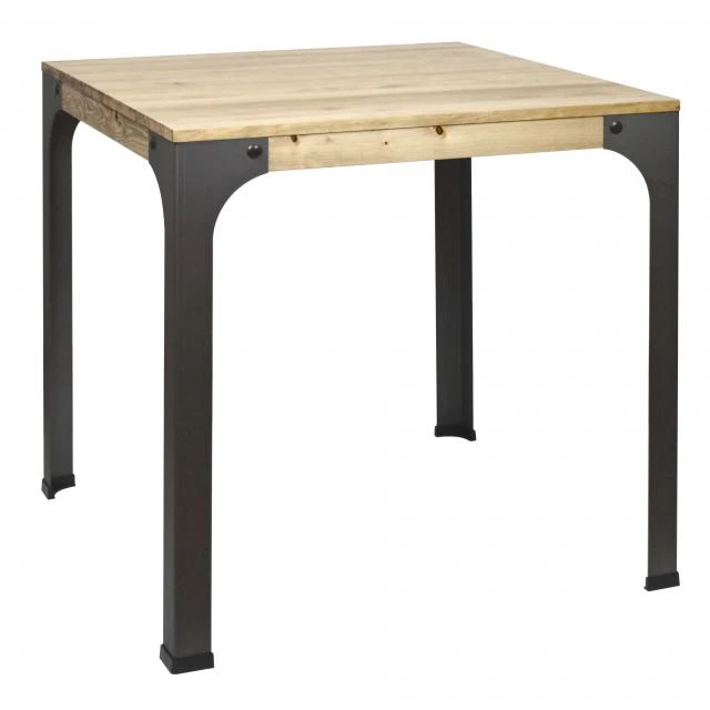 Table de bar ou salle à manger en style industriel vintage. Parfaite pour créer une ambiance industrielle dans un bar, bistrot ou restaurant. Le style de mobilier industriel vintage prend ses caractéristiques des vieilles usines ou espaces industriels, auxquels des solides pièces en bois massif sont combinées avec des éléments metalliques qui font l’union et au même temps leur confèrent une extraordinaire résistance à l’usage. Plateau en bois massif de pin fini avec des huiles naturels, avec haute résistance à l’usage et certification écologique. Touchée très agréable à bois naturel. Très solide avec pieds métal en 2 mm. D’épaisseur coupé à laser. Finition avec peinture en poudre sechée au four à l’haute température.