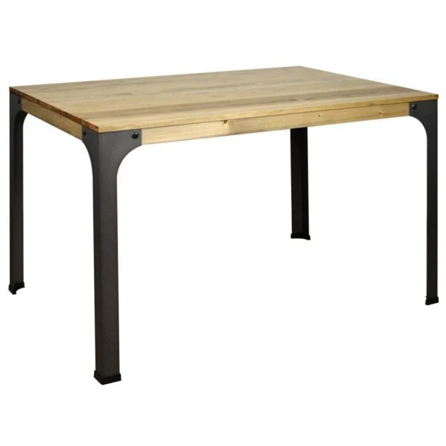 Table de bar ou salle à manger en style industriel vintage. Parfaite pour créer une ambiance industrielle dans un bar, bistrot ou restaurant. Le style de mobilier industriel vintage prend ses caractéristiques des vieilles usines ou espaces industriels, auxquels des solides pièces en bois massif sont combinées avec des éléments metalliques qui font l’union et au même temps leur confèrent une extraordinaire résistance à l’usage. Plateau en bois massif de pin fini avec des huiles naturels, avec haute résistance à l’usage et certification écologique. Touchée très agréable à bois naturel. Très solide avec pieds métal en 2 mm. D’épaisseur coupé à laser. Finition avec peinture en poudre sechée au four à l’haute température.