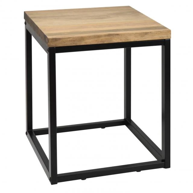 Table basse auxiliaire ou chevet en bois massif et métal. La beauté de la simplicité et du minimalisme, et des matières premières. Le style de mobilier industriel vintage prend ses caractéristiques des vieilles usines ou espaces industriels, auxquels des solides pièces en bois massif sont combinées avec des éléments metalliques qui font l’union et au même temps leur confèrent une extraordinaire résistance à l’usage. Plateau en bois massif de pin de 30mm. fini avec des huiles naturels, avec haute résistance à l’usage et certification écologique. Touchée très agréable à bois naturel. Structure en tube d’acier de 1,5 mm. d’épaisseur. Finition avec peinture en poudre séchée au four à l’haute temperature. Haute résistance.