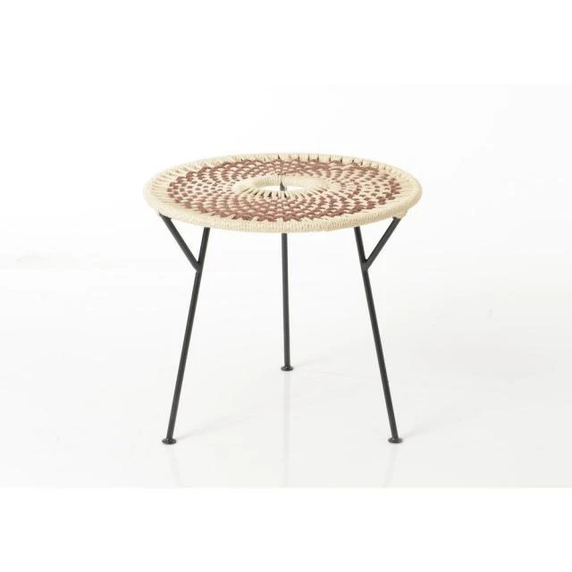 Table basse en métal avec plateau tressé avec une finition qualitative pour apporter une note bohème et un esprit nature à votre boutique.