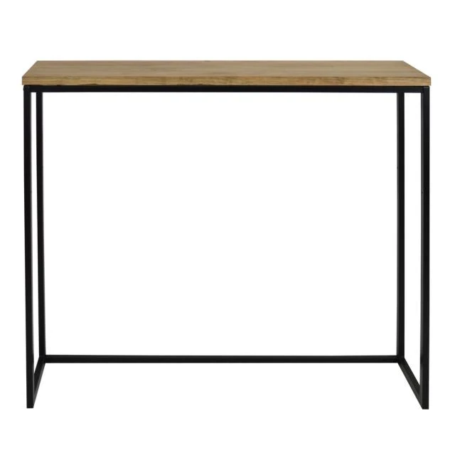 Table auxiliaire d’entrée ou console en bois massif et métal. La beauté de la simplicité et du minimalisme, et des matières premières. Le style de mobilier industriel vintage prend ses caractéristiques des vieilles usines ou espaces industriels, auxquels des solides pièces en bois massif sont combinées avec des éléments metalliques qui font l’union et au même temps leur confèrent une extraordinaire résistance à l’usage. Plateau en bois massif de pin de 30mm. fini avec des huiles naturels, avec haute résistance à l’usage et certification écologique. Touchée très agréable à bois naturel. Structure en tube d’acier de 1,5 mm. d’épaisseur. Finition avec peinture en poudre séchée au four à l’haute temperature. Haute résistance.