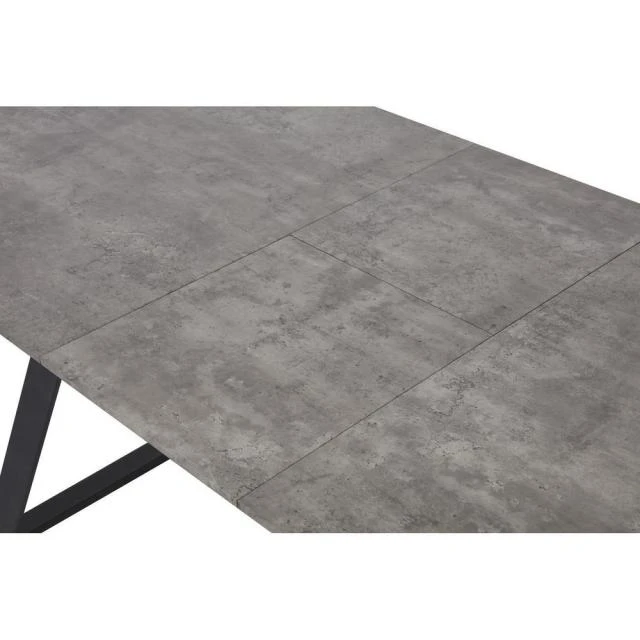 Matières: Plateau Bois Pieds Metal Dimensions produit: 75 (H) x 90 (l) x 160 (P) cm Plateau Bois Rectangle 160 x 90 cm avec rallonge 40 cm 8 couverts. Couleur(s): Gris, Poids net: 33 kg