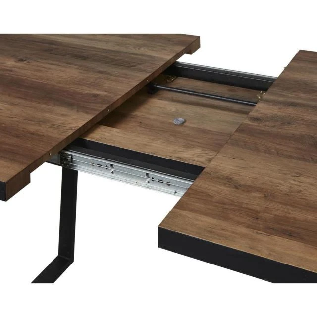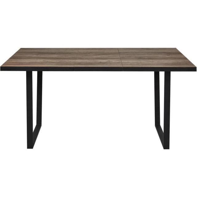 Matières: Plateau Bois Pieds Metal Noir Dimensions produit: 75 (H) x 90 (l) x 160 (P) cm Plateau Bois Rectangle 160 x 90 cm avec rallonge 40 cm 8 couverts. Couleur(s): Marron, Poids net: 24 kg