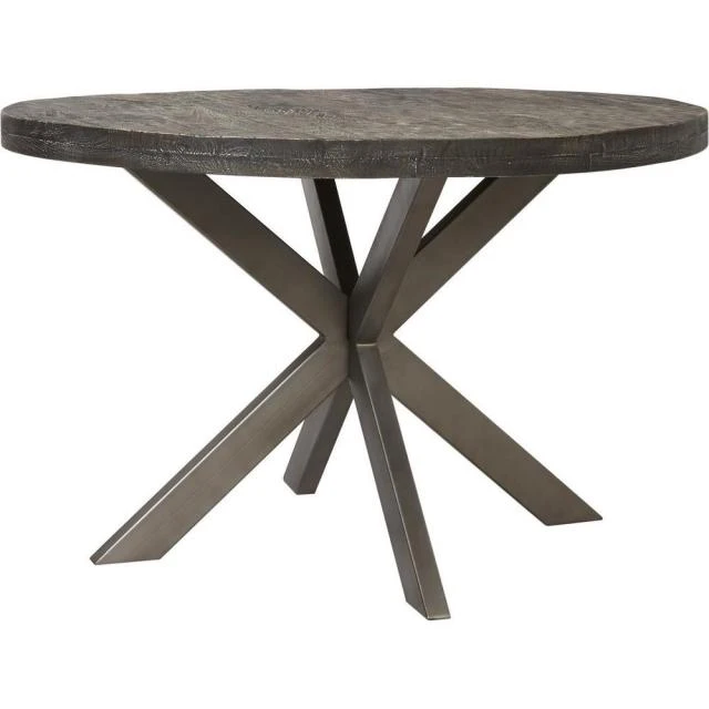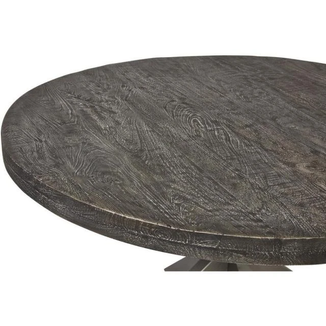 Matières: Plateau Bois Mango Massif Pieds Metal Gris Dimensions produit: 76 (H) x 120 (l) x 120 (P) cm Plateau Bois Mango Massif Rond 120 x 120 cm 4 couverts. Couleur(s): Gris, Poids net: 33 kg
