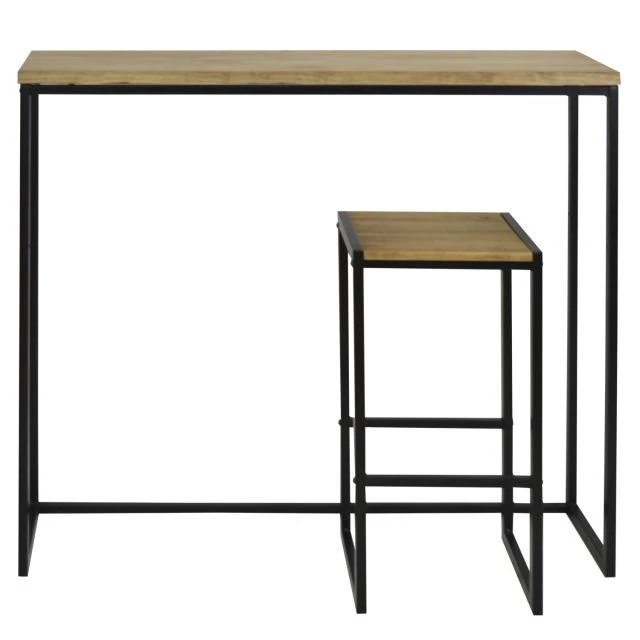 Table haute type Mange debout en style industriel-vintage en bois massif et metal. Plateau de 30mm. La beauté de la simplicité et du minimalisme, et des matières premières. Le style de mobilier industriel vintage prend ses caractéristiques des vieilles usines ou espaces industriels, auxquels des solides pièces en bois massif sont combinées avec des éléments metalliques qui font l’union et au même temps leur confèrent une extraordinaire résistance à l’usage. Plateau en bois massif de pin de 30 mm. fini avec des huiles naturels, avec haute résistance à l’usage et certification écologique. Touchée très agréable à bois naturel. Structure en tube d’acier de 1,5 mm. d’épaisseur. Finition avec peinture en poudre séchée au four à l’haute temperature. Haute résistance.