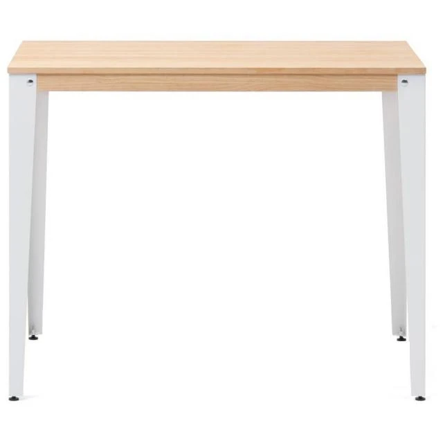 Table Mange debout Lunds en style scandinave. Longueur 100cm x Profondeur 60cm x hauteur de 110cm. Métal blanc, bois finition naturel. Conçue et fabriqué en Espagne.