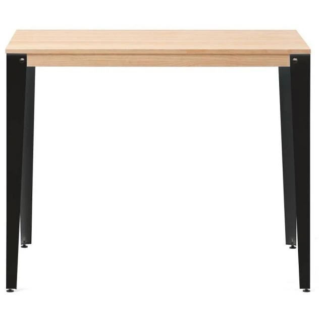 Table Mange debout Lunds en style scandinave. Longueur 140cm x Profondeur 60cm x hauteur de 110cm. Métal noir, bois finition naturel. Conçue et fabriqué en Espagne.