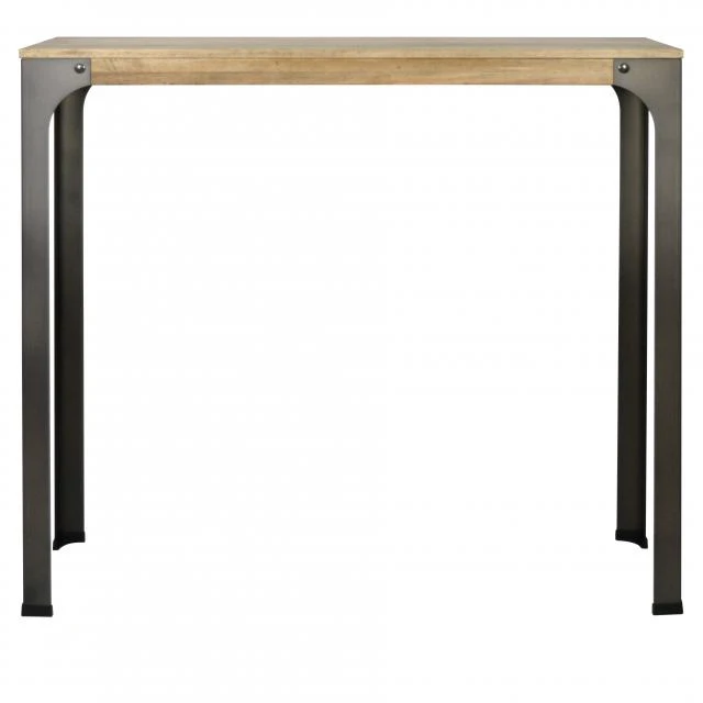 Table haute de bar, mange debout en style industriel vintage. Parfaite pour créer une ambiance industrielle dans un bar, bistrot ou restaurant. Le style de mobilier industriel vintage prend ses caractéristiques des vieilles usines ou espaces industriels, auxquels des solides pièces en bois massif sont combinées avec des éléments metalliques qui font l’union et au même temps leur confèrent une extraordinaire résistance à l’usage. Plateau en bois massif de pin fini avec des huiles naturels, avec haute résistance à l’usage et certification écologique. Touchée très agréable à bois naturel. Très solide avec pieds métal en 2 mm. d’épaisseur coupé à laser. Finition avec peinture en poudre sechée au four à l’haute température.