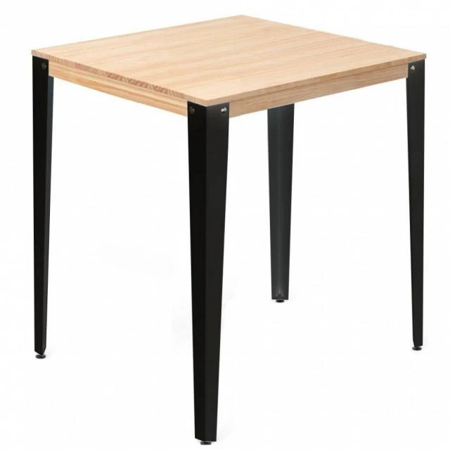 Table Mange debout Lunds en style scandinave. Longueur 80cm x Profondeur 80cm x hauteur de 110cm. Métal noir, bois finition naturel. Conçue et fabriqué en Espagne.