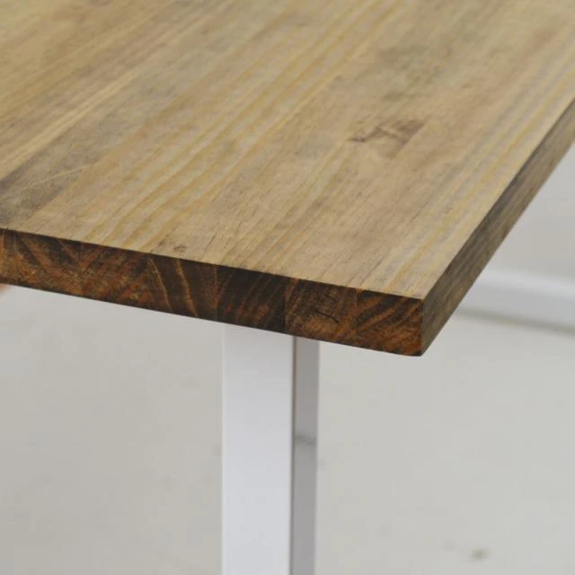 Plateau en bois massif de pin de 30mm fini aux des huiles naturels, avec haute résistance à l’usage et certification écologique. Finition “Effect Vintage” avec un aire viellie. Touchée très agréable à bois naturel.Pieds en tube d’acier de 40×40 mm. Finition de peinture en poudre séchée au four à l’haute temperature. Haute résistance.L’emplacement des pieds est livre. Le client peut choisir au moment fixer les pieds le space entre le pied et l’extrème du plateau. Pieds reglables en hauteur.