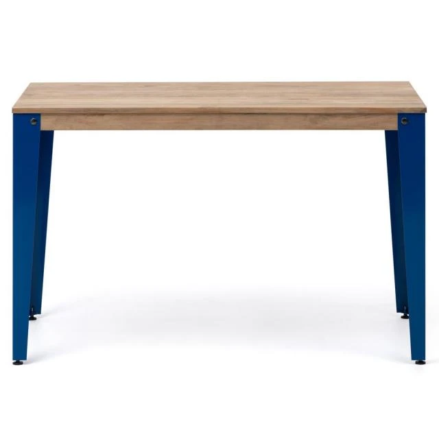 Table de salle à manger en style industriel vintage. Longueur 140cm x Profondeur 80cm x Hauteur de 75cm. Métal bleu, bois finition vieilli effet vintage. Conçue et fabriquée en Espagne par BOX FURNITURE.