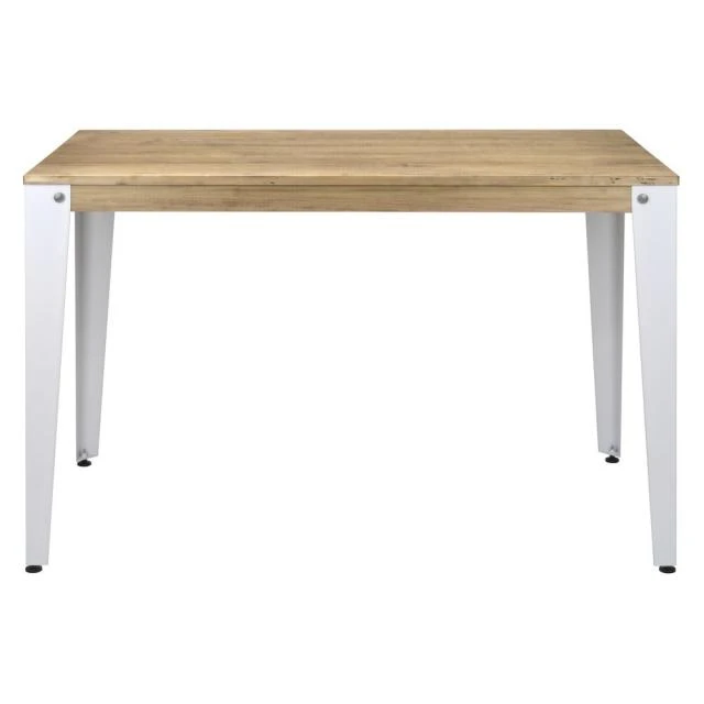Table de salle à manger en style industriel vintage. Longueur 160cm x Profondeur 90cm x Hauteur de 75cm. Métal blanc, bois finition vieilli effet vintage. Conçue et fabriquée en Espagne par BOX FURNITURE.