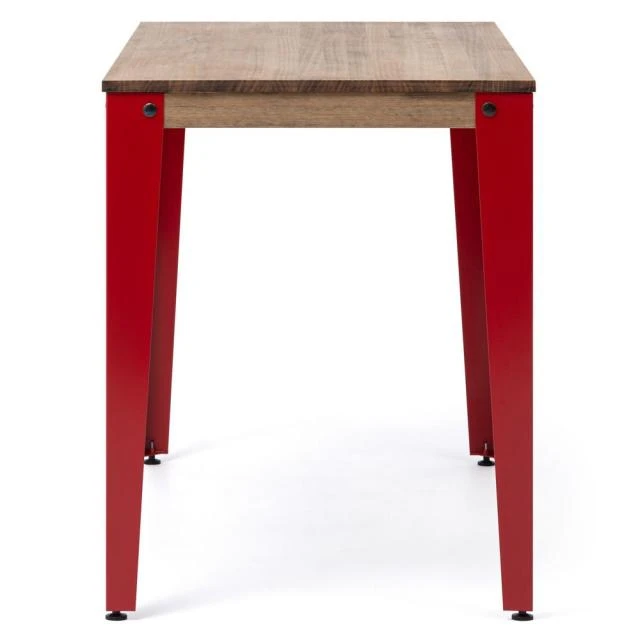 Table de salle à manger en style industriel vintage. Longueur 160cm x Profondeur 90cm x Hauteur de 75cm. Métal Rouge, bois finition vieilli effet vintage. Conçue et fabriquée en Espagne par BOX FURNITURE.