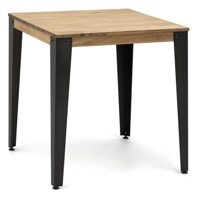 Table de salle à manger en style industriel vintage. Longueur 80cm x Profondeur 80cm x Hauteur de 75cm. Métal Anthracite, bois finition vieilli effet vintage. Conçue et fabriquée en Espagne par BOX FURNITURE.