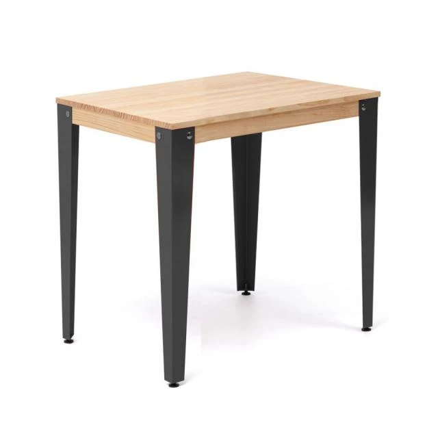 Plateau en bois massif de pin fini avec des huiles naturelles, avec haute résistance à l’usage et certification écologique. Touchée très agréable à bois naturel. Très solide avec pieds métal en 2 mm. d’épaisseur coupé à laser. Finition avec peinture en poudre sechée au four à l’haute température.