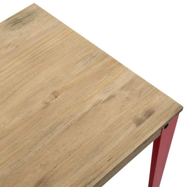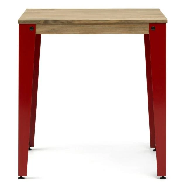 Table de salle à manger en style industriel vintage. Longueur 59cm x Profondeur 59cm x Hauteur de 75cm. Métal rouge, bois finition vieilli effet vintage. Conçue et fabriquée en Espagne par BOX FURNITURE.