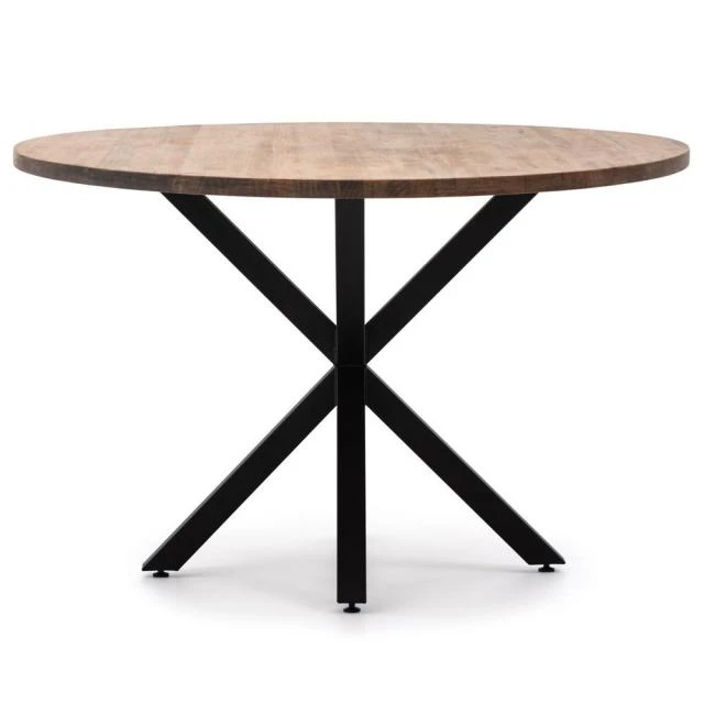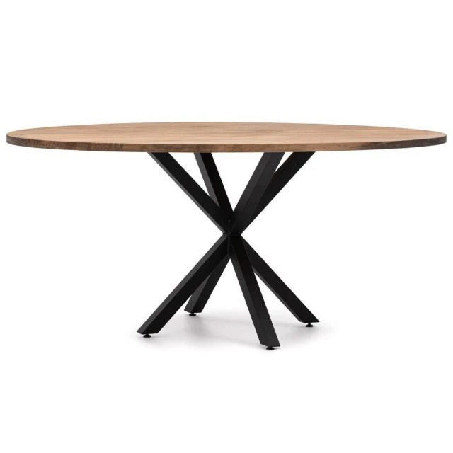 Table Ovale Pied étoile pour salle à manger en style industriel-vintage. Longueur 160cm x Profondeur 100cm x hauteur de 75cm. Métal noir, bois finition vieillie. Conçue et fabriqué en Espagne par BOX FURNITURE.