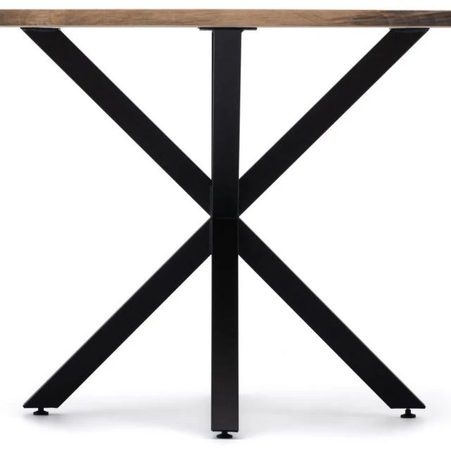 Table Ovale Pied étoile pour salle à manger en style industriel-vintage. Longueur 180cm x Profondeur 100cm x hauteur de 75cm. Métal noir, bois finition vieillie. Conçue et fabriqué en Espagne par BOX FURNITURE.