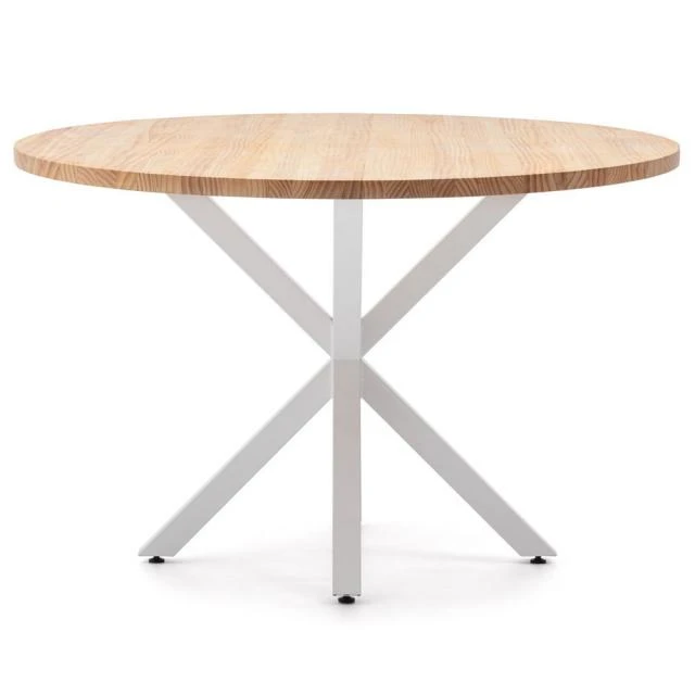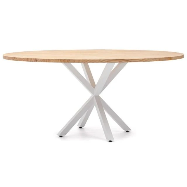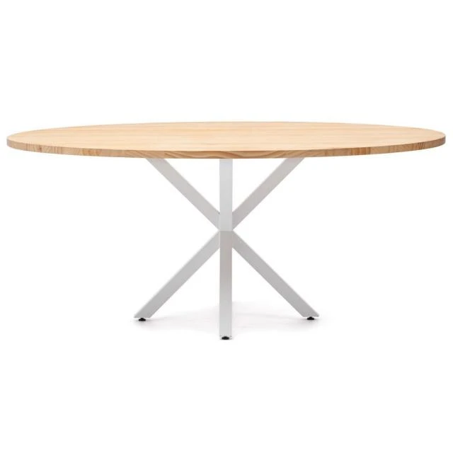 Table Ovale Pied étoile pour salle à manger en style scandinave. Longueur 160cm x Profondeur 90cm x hauteur de 75cm. Métal Blanc, bois finition naturelle. Conçue et fabriqué en Espagne . Parfaite pour créer une ambiance nordique.