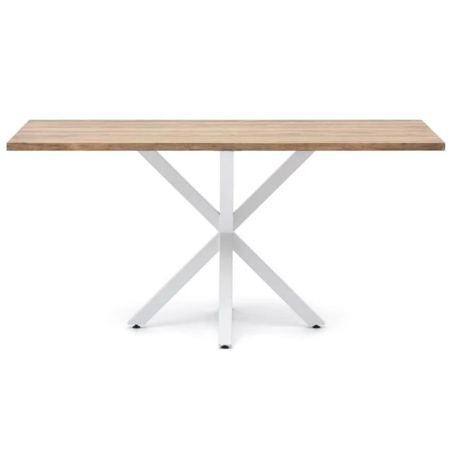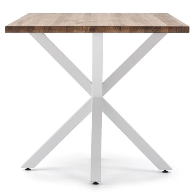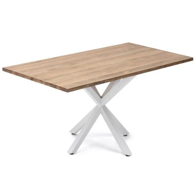 Table Pied étoile pour salle à manger en style industriel-vintage. Longueur 180cm x Profondeur 80cm x hauteur de 75cm. Métal Blanc, bois finition vieillie. Conçue et fabriqué en Espagne .