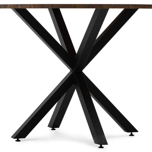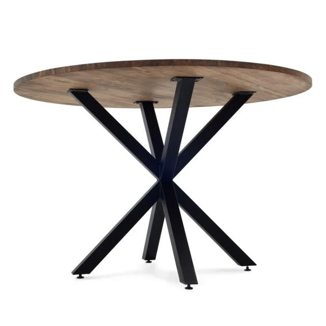 Table Ronde Pied étoile pour salle à manger en style industriel-vintage. Diametre 120cm x hauteur de 75cm. Métal noir, bois finition vieillie. Conçue et fabriqué en Espagne .